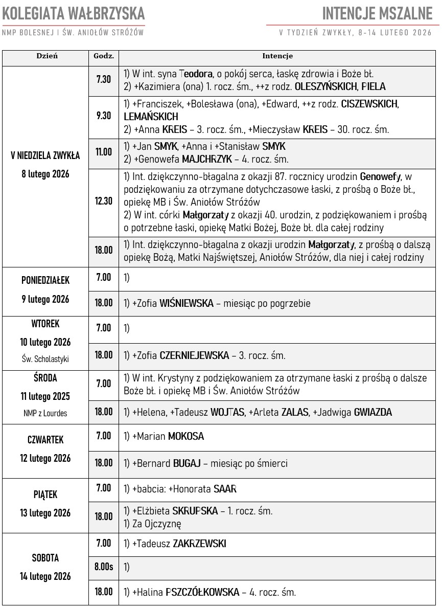 - 08:00: Msza św